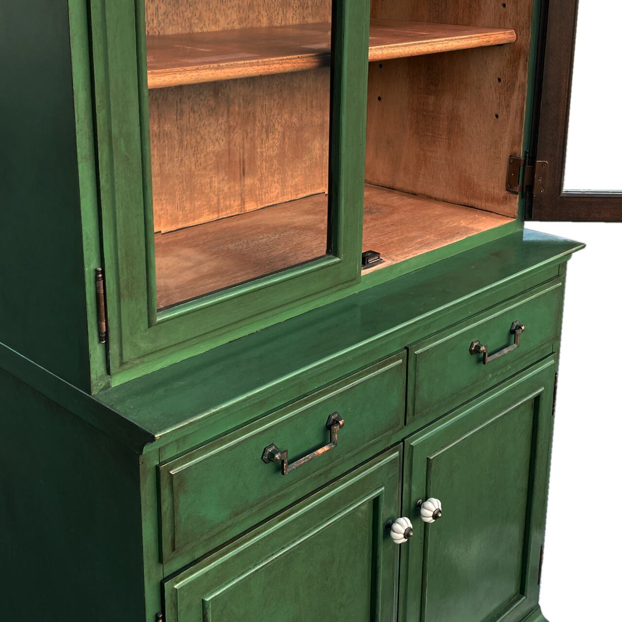 扉の縁に施された愛らしいディティールが特徴の木製食器棚です。