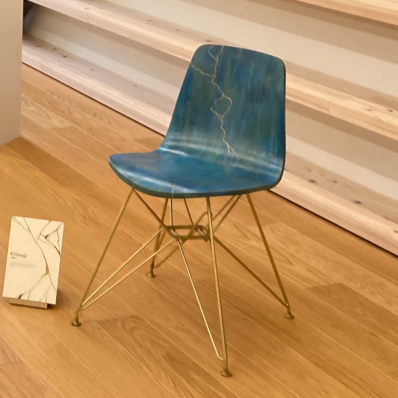 日本の伝統技法である金継ぎをモチーフにしたペイントが特徴の椅子です。