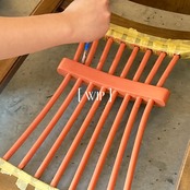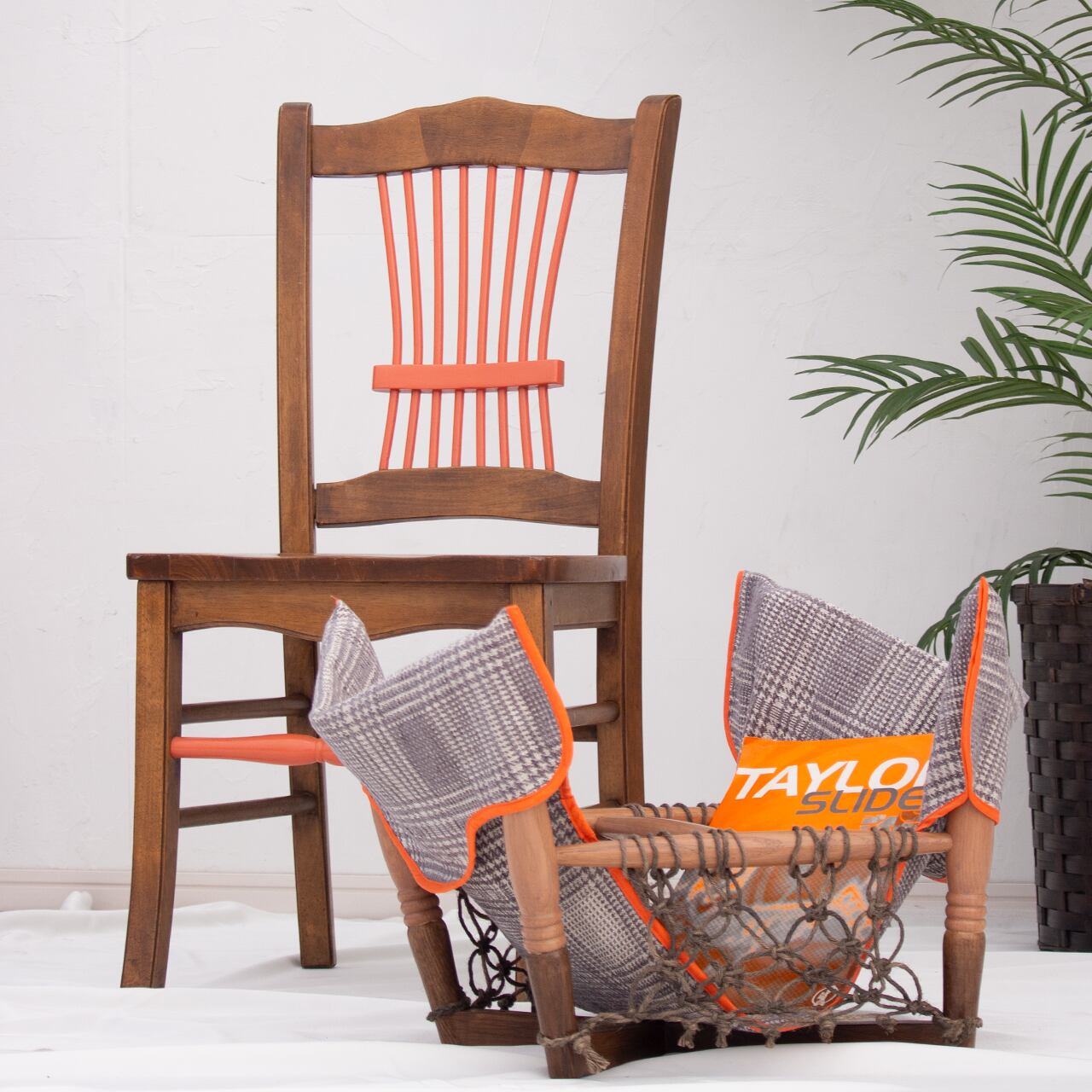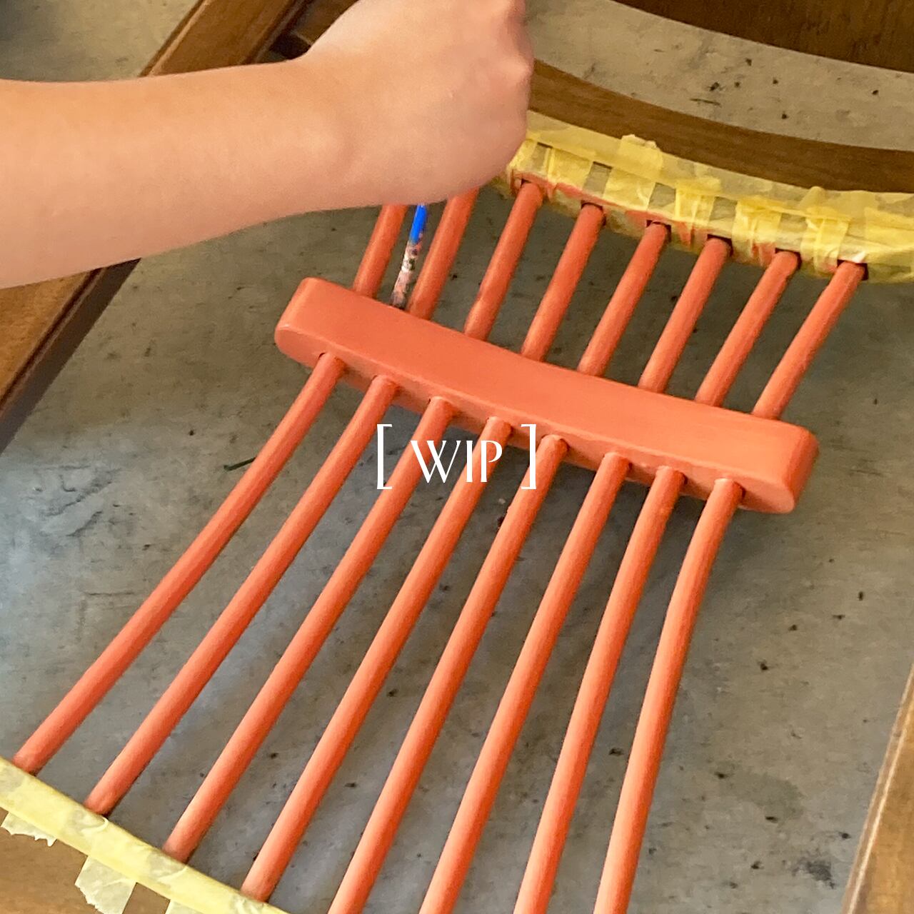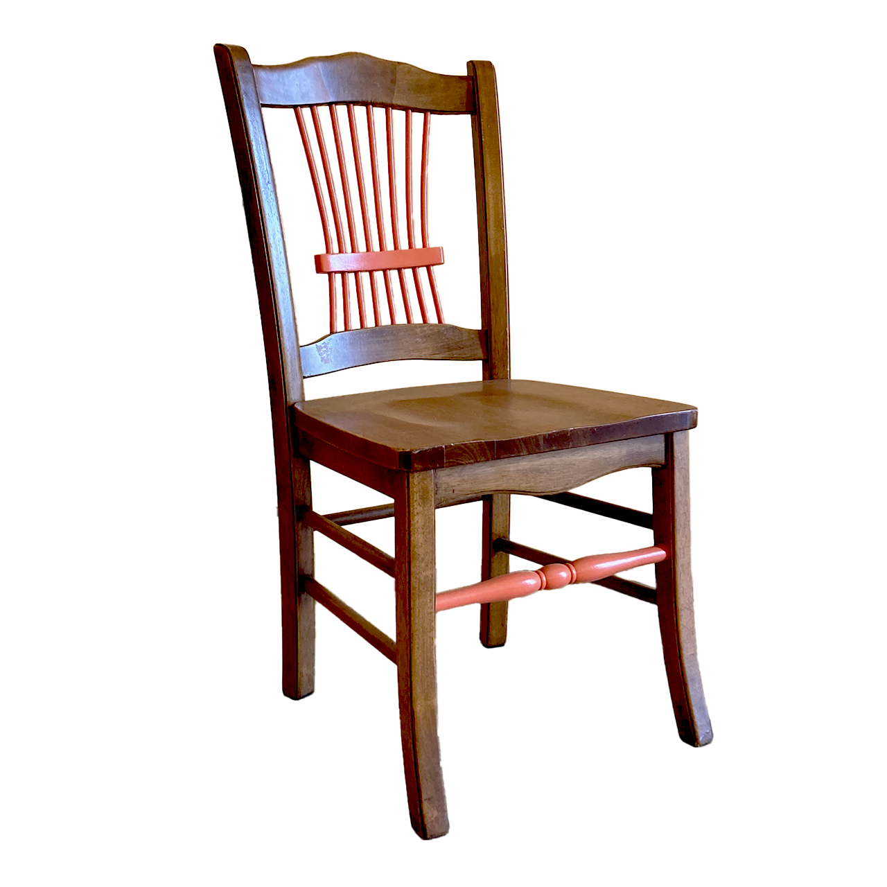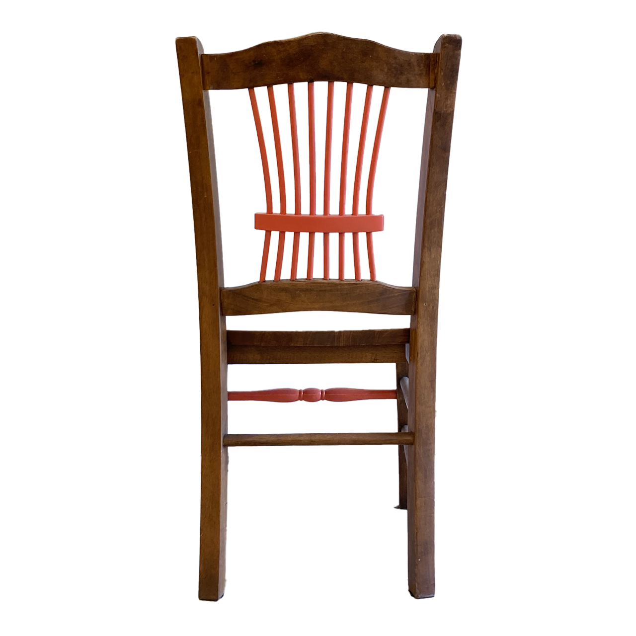 自然な木の風合いを残しながら、背もたれにオレンジを加えて印象を整えています。