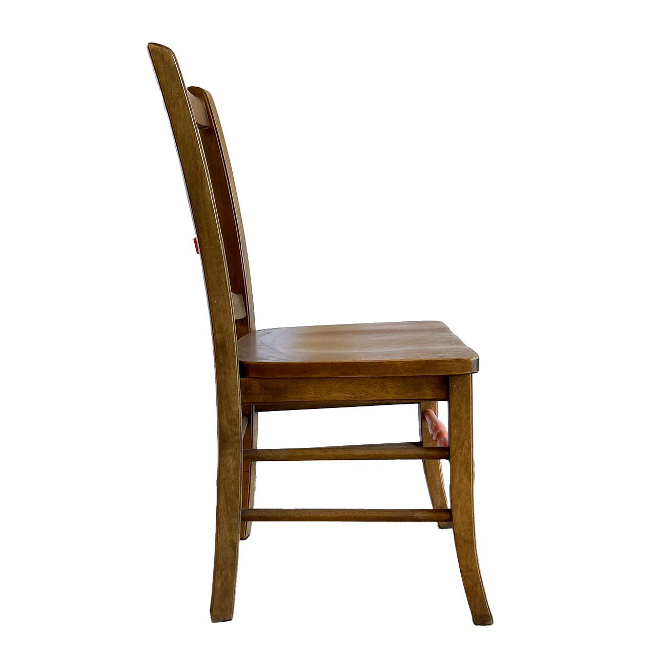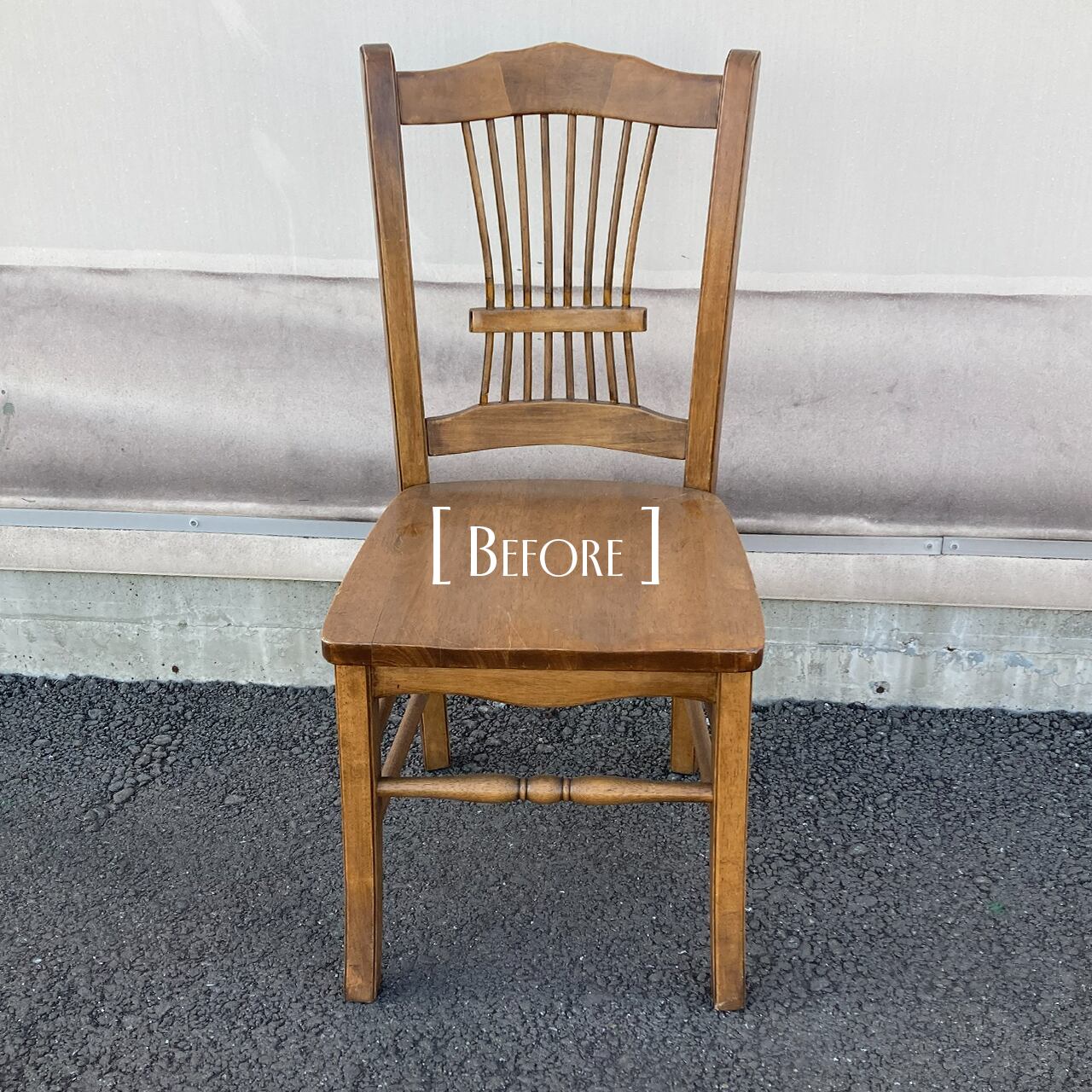 濃いブラウンで、傷や色褪せのある状態の椅子でした。