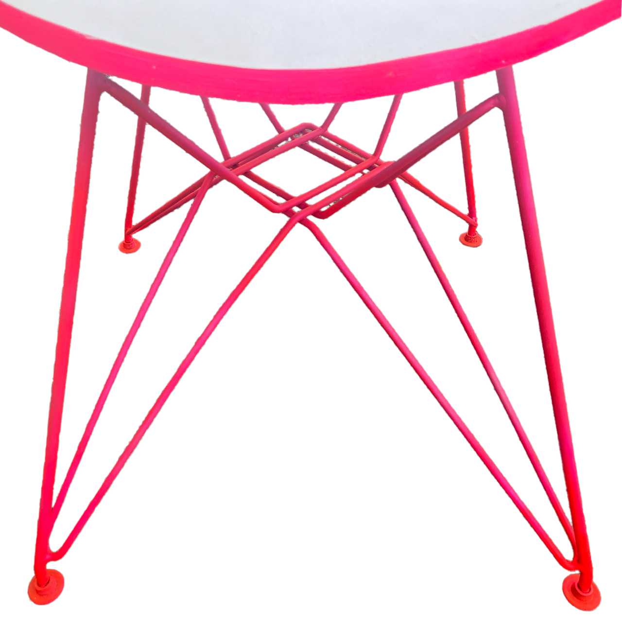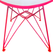 白いボディに走る蛍光ピンクのライン、そして細く軽やかに交差する脚はピンク色に仕上げることで遊び心を加えました。