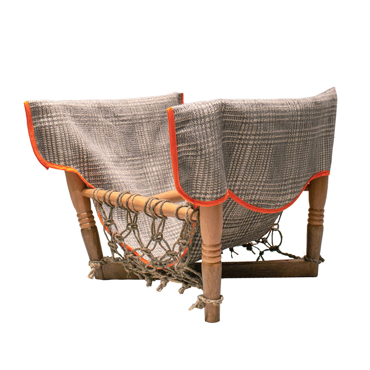 チェック柄の生地にオレンジのラインを加え、アクセントの効いた印象に整えています。