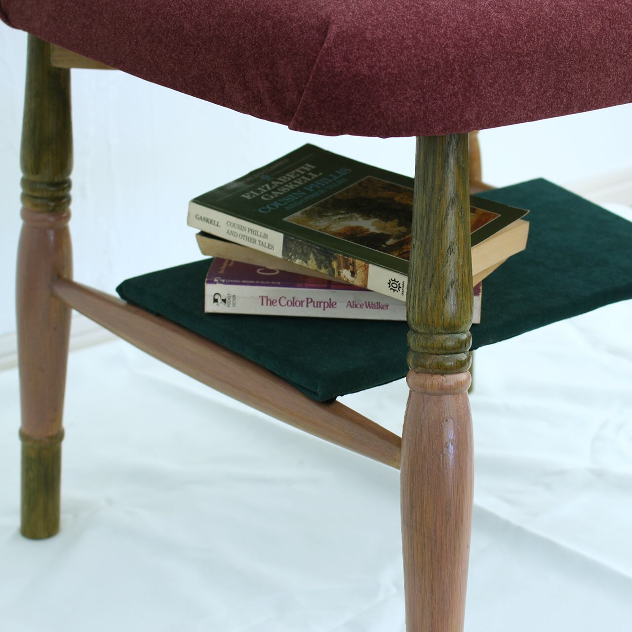 布地の色をオリーブグリーンとピンクで整え、空間に合わせやすい印象に変えています。