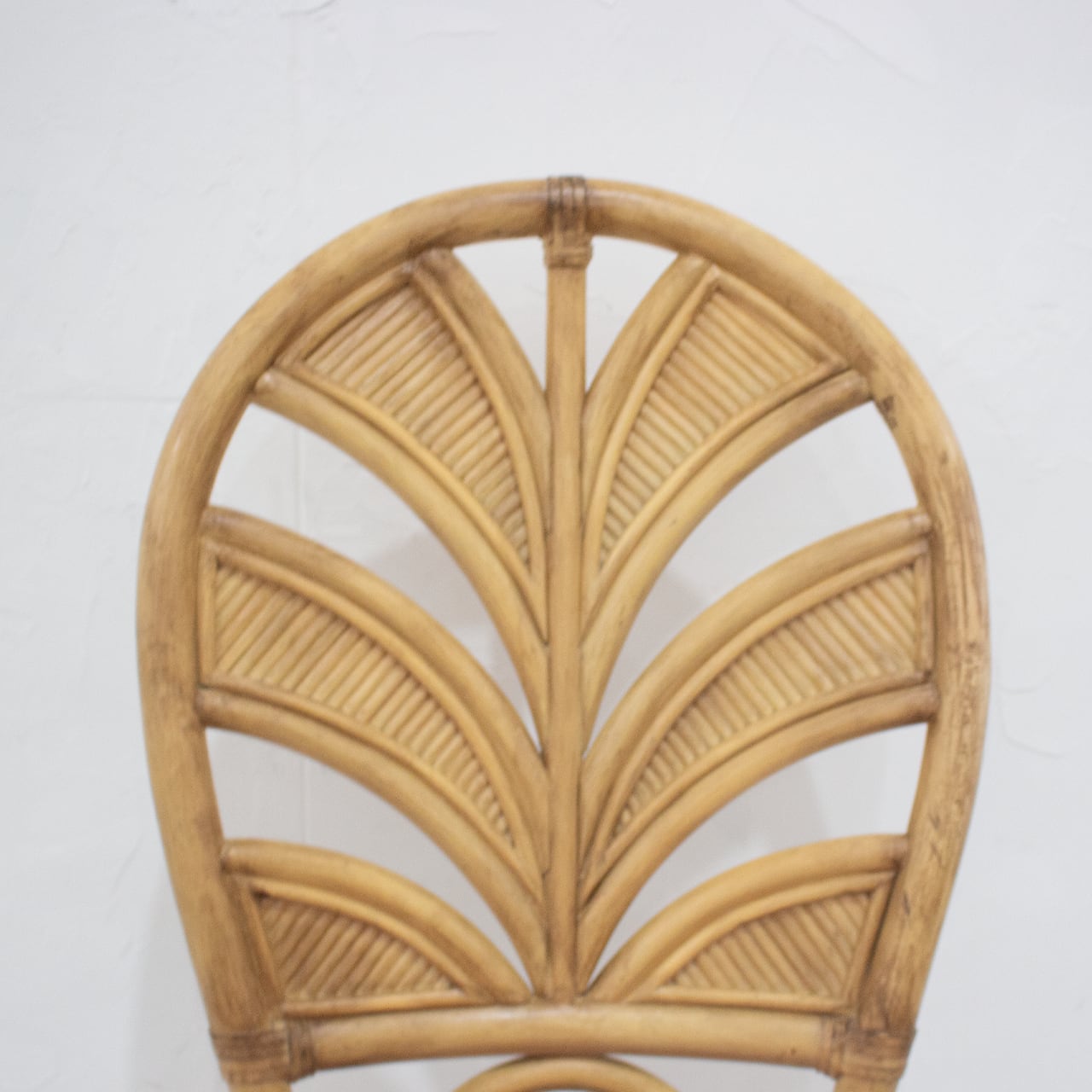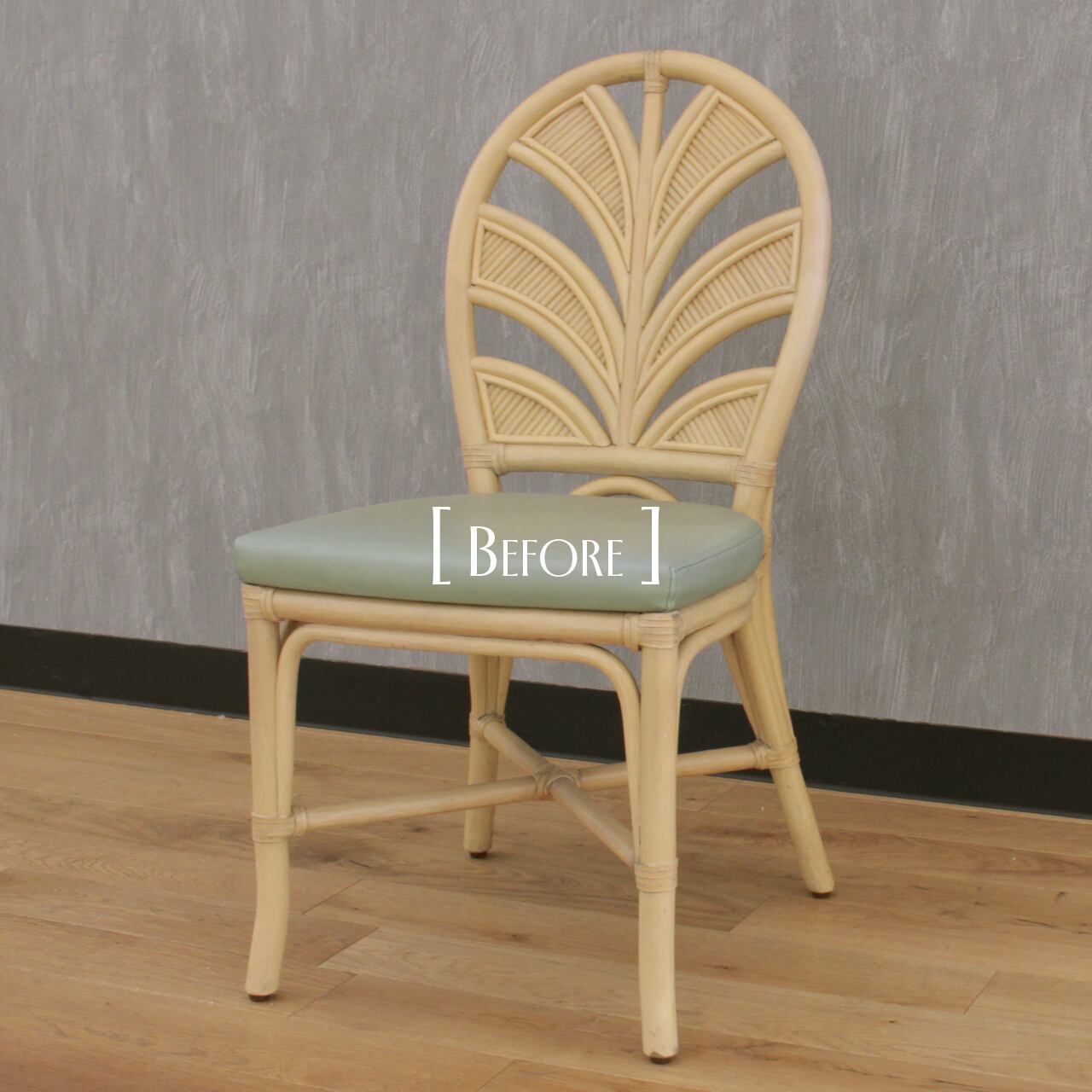 白く塗装されたラタンのフレームと、くすみがかり使用感のある座面が印象的な椅子でした。