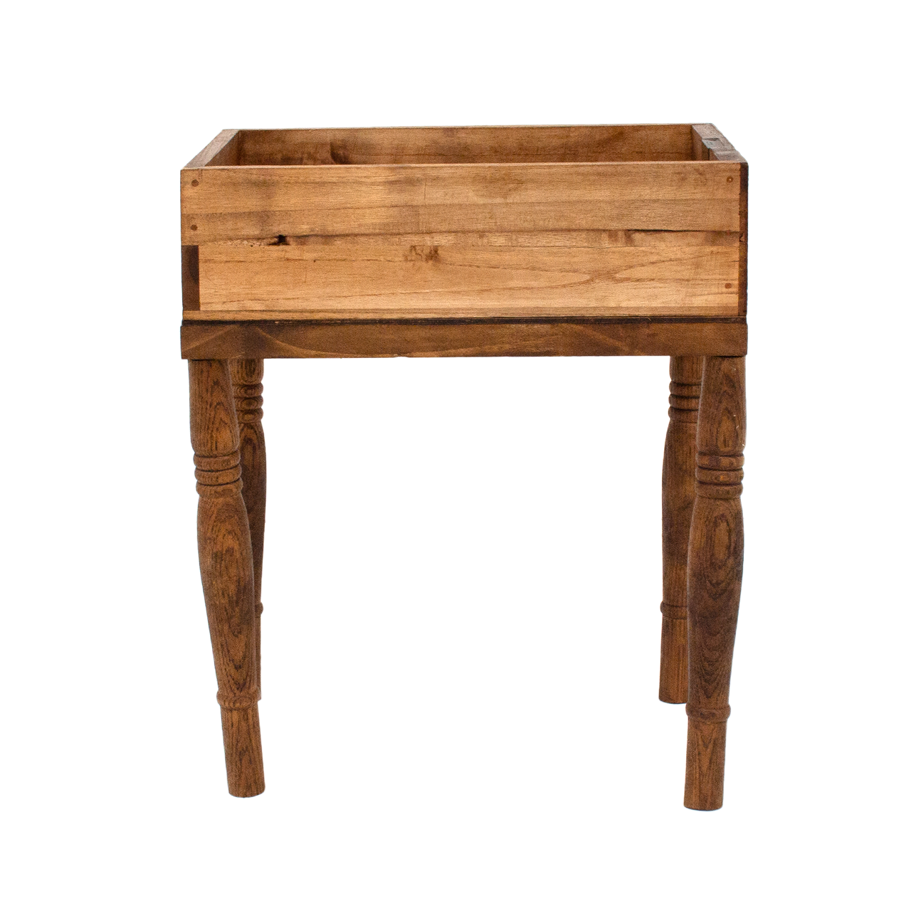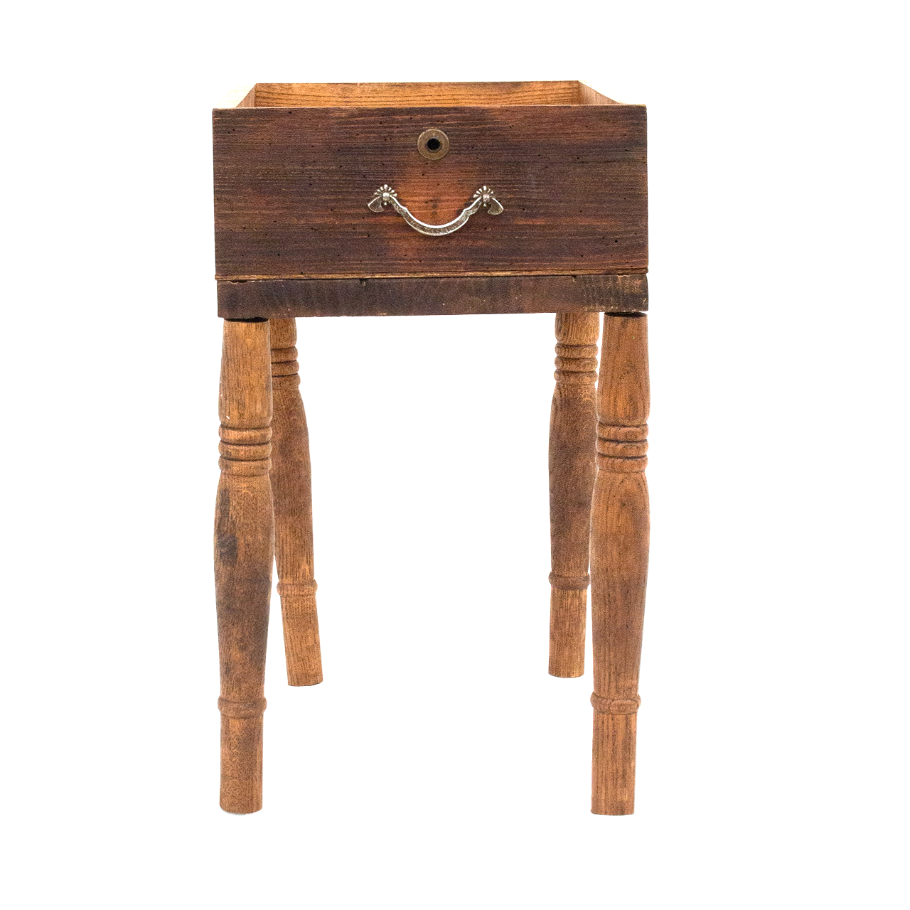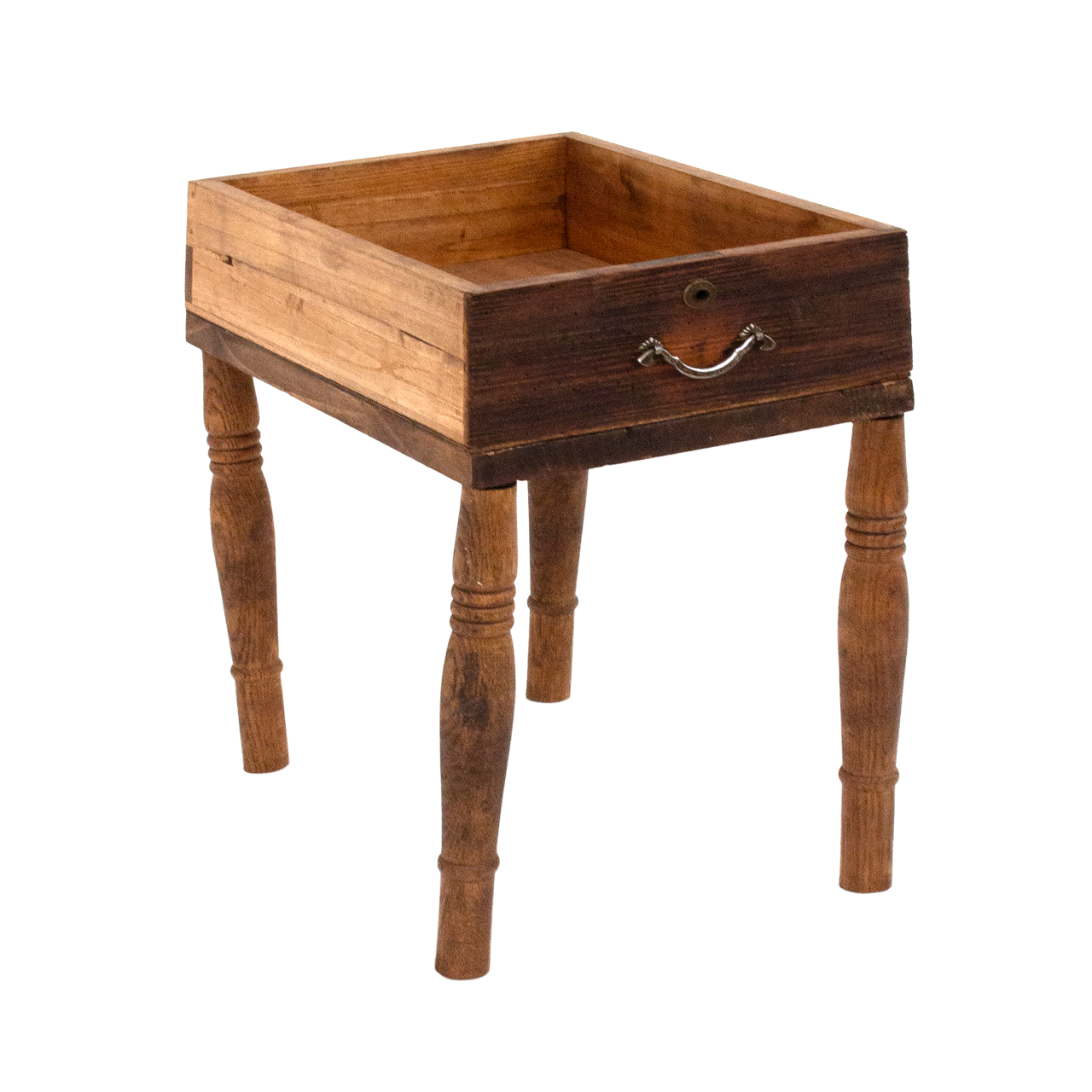 古箪笥の引き出しと北欧風の脚を組み合わせた、木製の小型収納です。