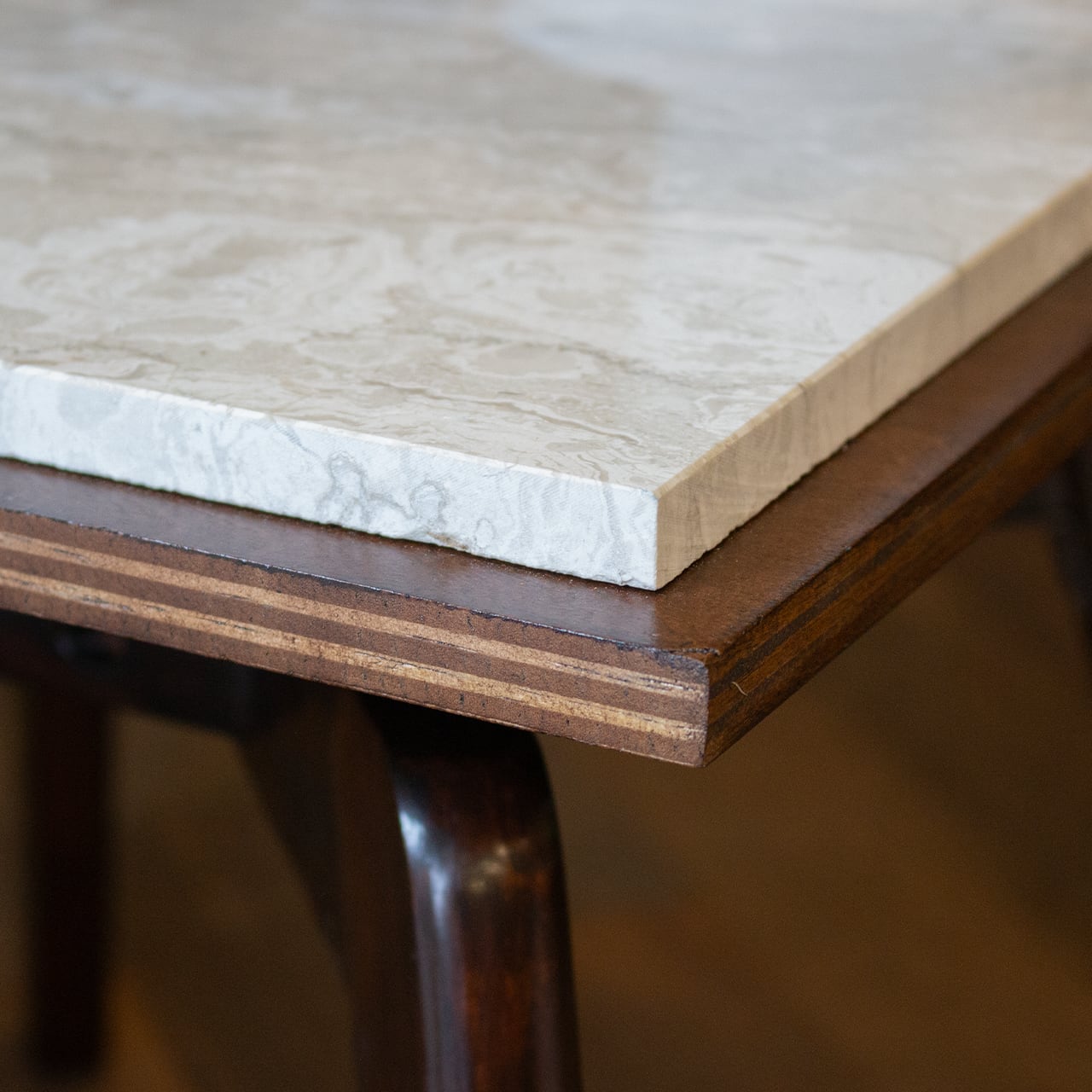 大理石の重厚さと回転脚の軽やかさを活かし、素材の対比が際立つよう整えました。