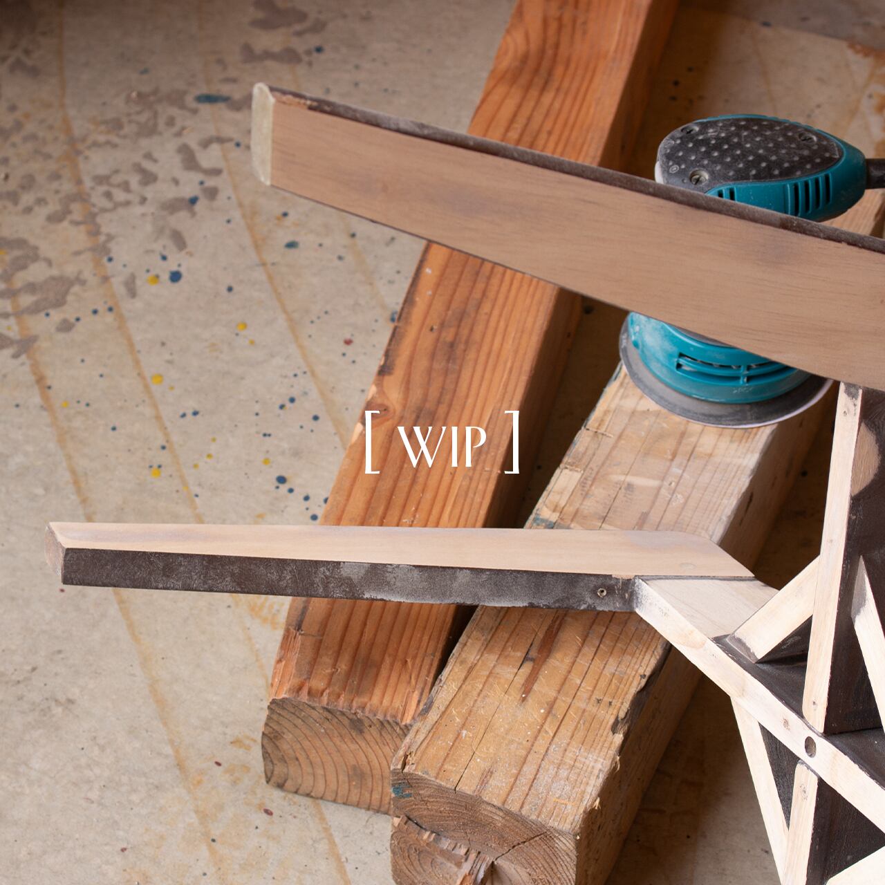 かけや傷のある廃材の石と家具パーツを使用しています。
