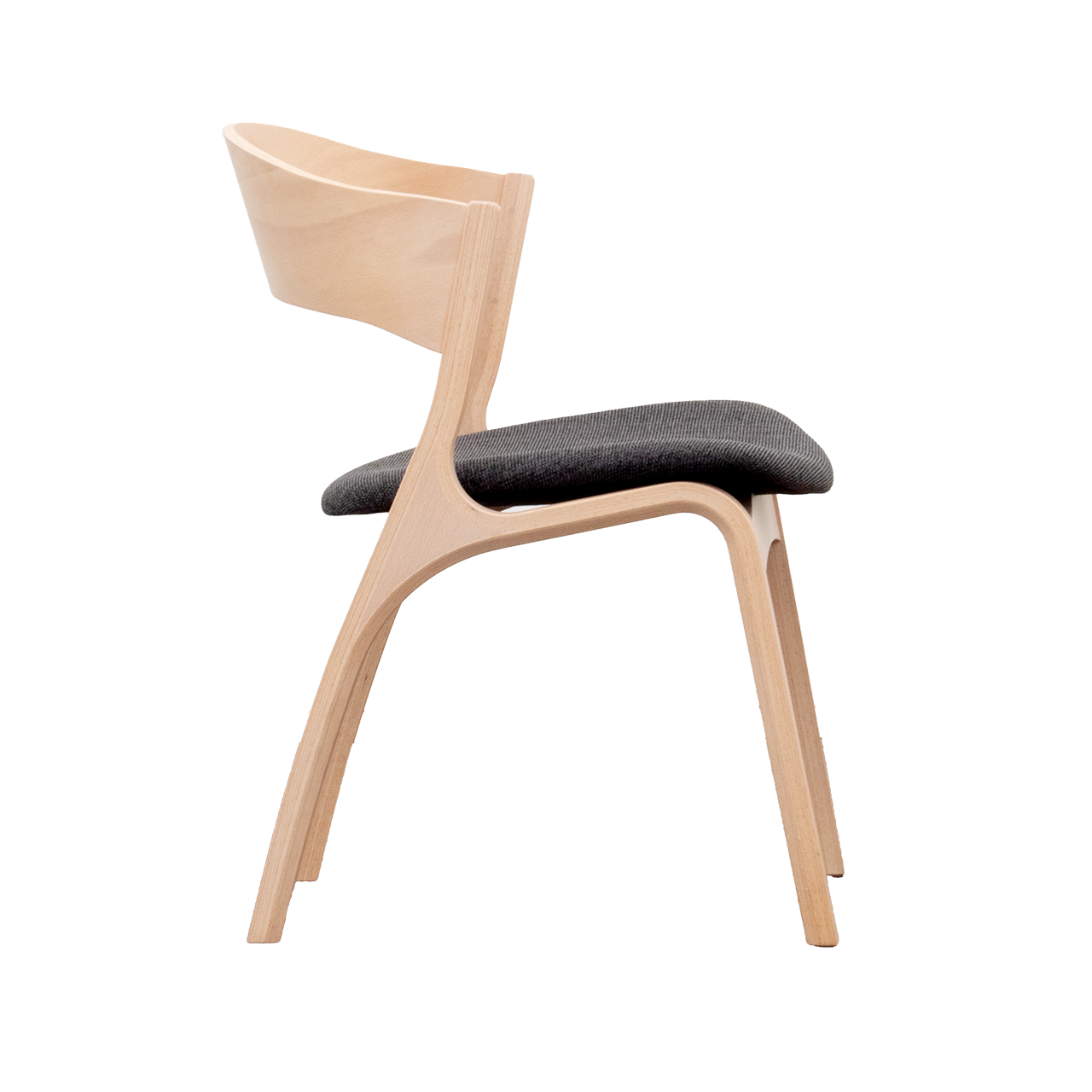 滑らかな曲線を描くような造形が美しい脚と、深いカーブの背もたれが特徴のダイニングチェアです。